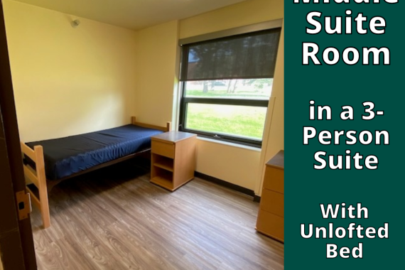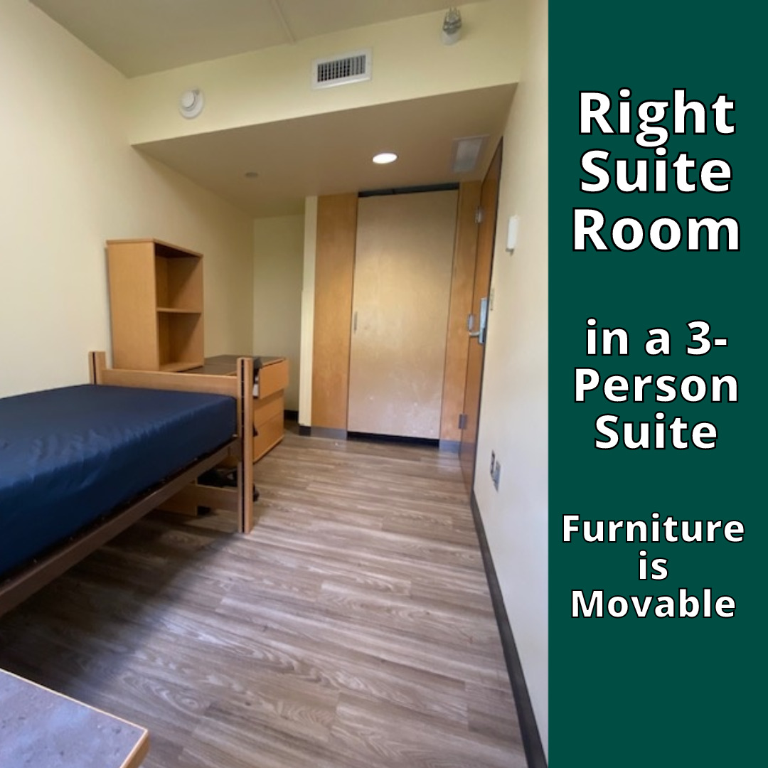 Relax in your own personal space with friends close by. Each 2 or 3-person unit has its own bath to share and features private bedrooms. Suites are fully furnished in modern, modular style, complete with beds, closets, dresser, desk and desk chair. Take a virtual tour or check out a suite diagram. It’s a suite place to call home.